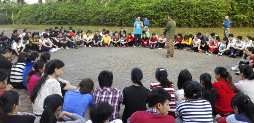 接下來的比賽項目是報數,看似很簡單的事情,但過程總是因為某個人開小差、不用心等導致團隊失敗,失敗團隊的隊長承擔100%責任,俯臥撐從5個到10個到20個到40個再到80個,每一輪比賽輸的團隊隊長承擔的俯臥撐是上一輪的雙倍。比賽氛圍開始還很比較輕松,兩輪后大家開始緊張了,到第五輪時,受罰的隊長苦苦支撐著、一次又一次爬起、趴下、再爬起時,全體員工沉默了。隨后一名又一名員工趴下與隊長一起受罰,一起承擔,最后其它團隊的所有成員自愿自發全部圍繞在受罰隊長身邊一起受罰、承擔,給受罰隊長支持、加油!