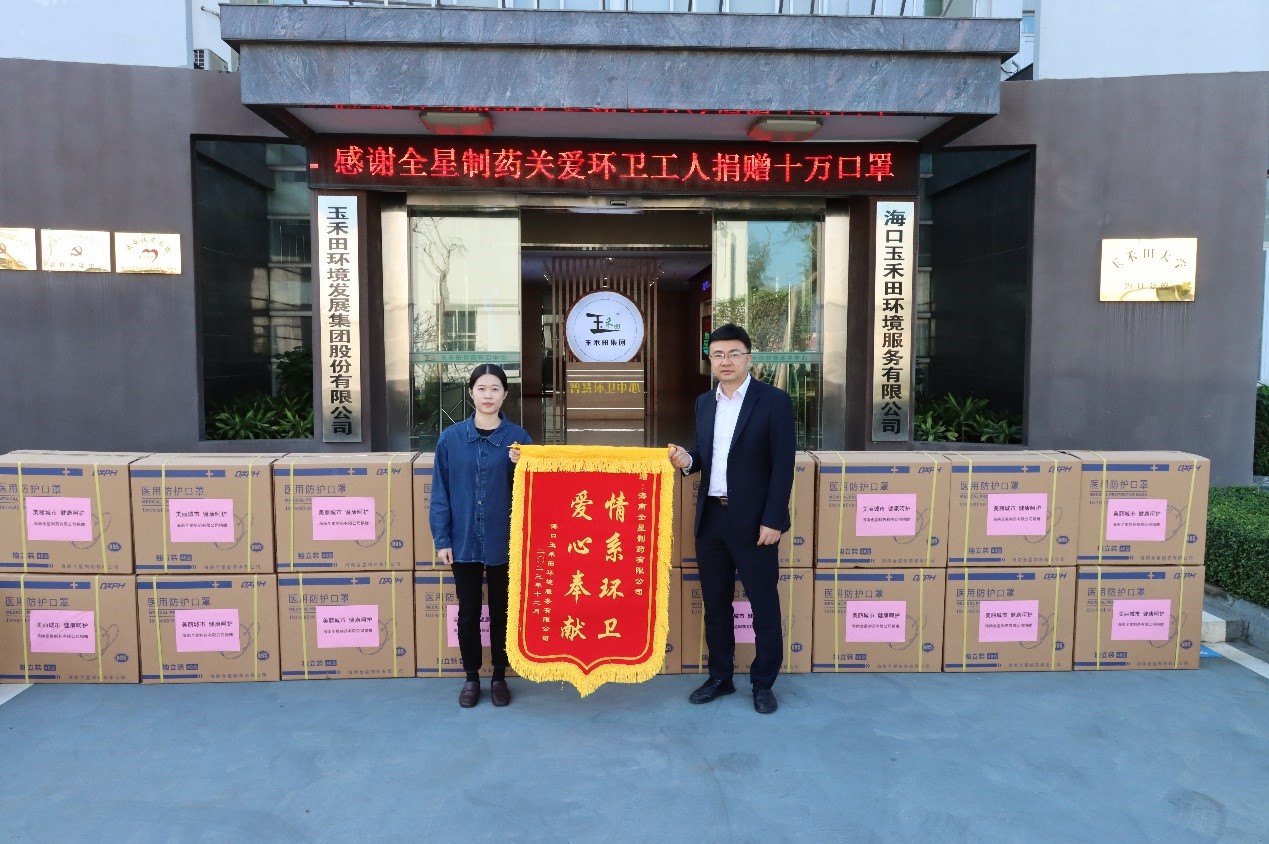海南全星制藥有限公司向海口市環衛工人贈送35萬個醫用口罩